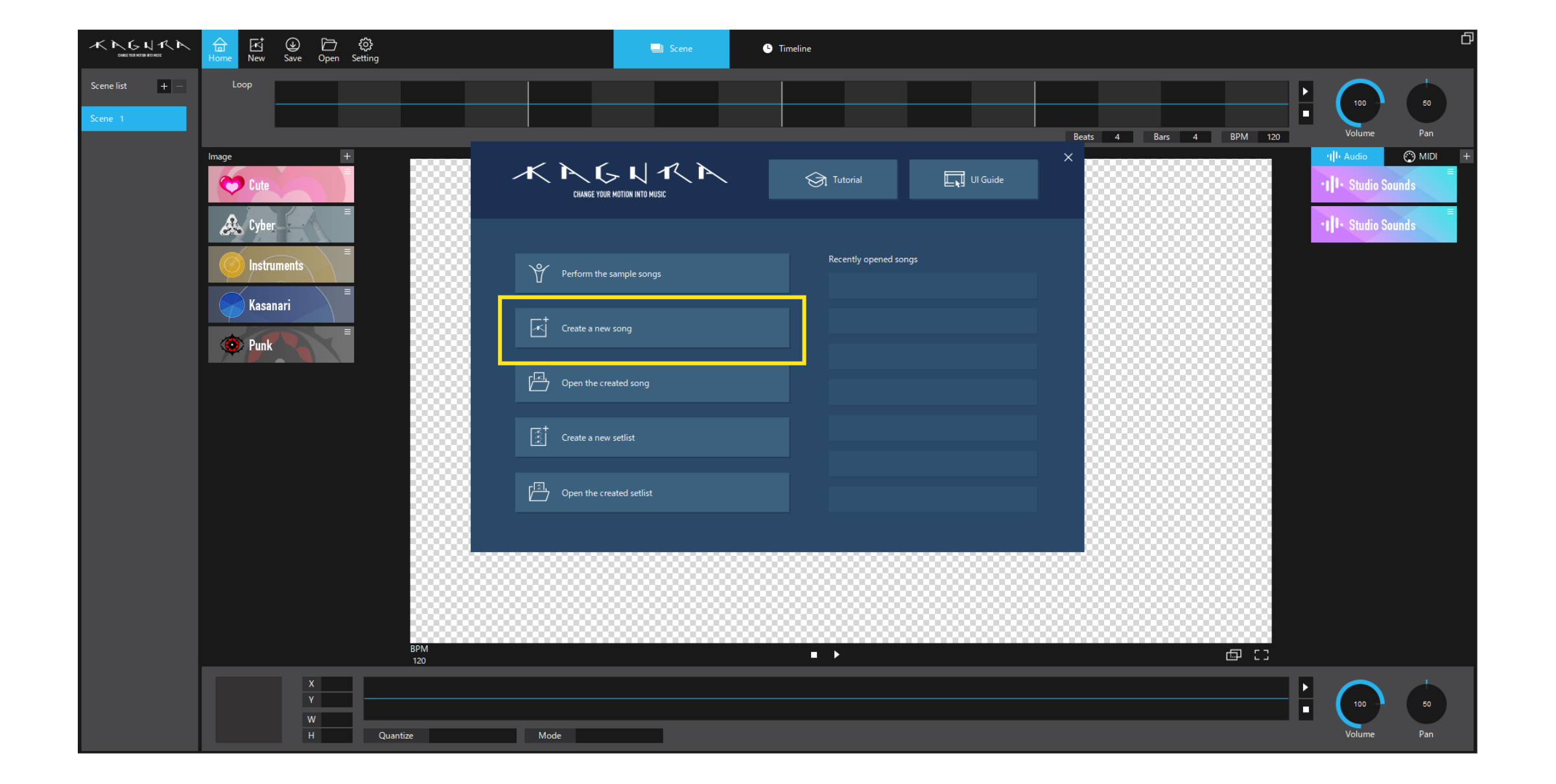 After the activation, the window pops up. Click the “Create a new song” button.
